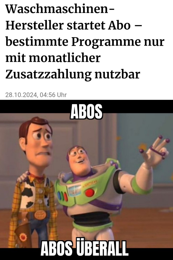 minus-squaredust_accelerator@discuss.tchncs.delinkfedilinkarrow-up27·1 year agoGefängnisbruch wird die Zukunft sein. “Du würdest nicht eine Waschmaschine runterladen” oder so