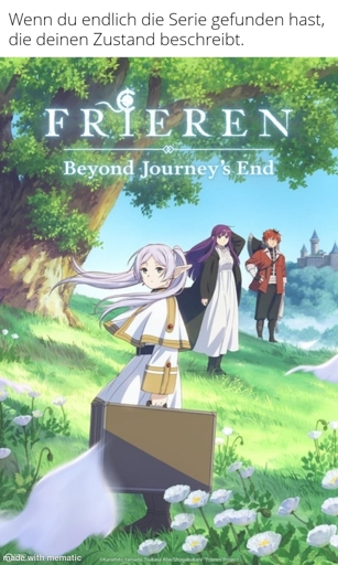 Ein Bild mit oben dem Text: “Wenn du endlich die Serie gefunden hast, die deinen Zustand beschreibt.” Darunter ein Poster des Animes Frieren.