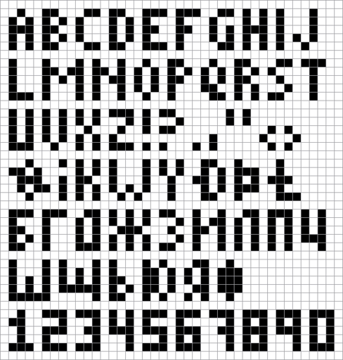 I regret not posting it before Canvas 2025, but hopefully it’ll be useful for people playing it in 2026. All letters are 5 pixels tall, and most 3 pixels wide (some 4, a few 5). I’ve also included a few Cyrillic letters and the digits.