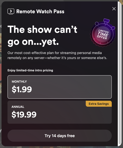 If I chose to use Plex’s plex.tv services to expose my server to the internet, that’s one thing. But I have my Plex server exposed through my own infrastructure (NPM + Let’s Encrypt), so fuck that shit.