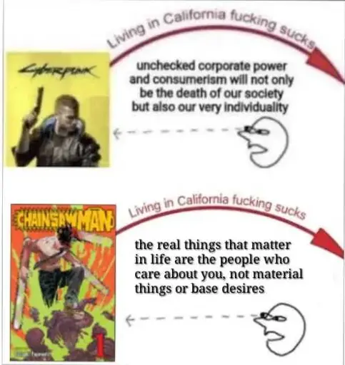 tgirlschierke@lemmy.blahaj.zone to Animemes@ani.socialEnglish · 23 days agoCalifornia [Cyberpunk: Edgerunners, Chainsaw Man]lemmy.blahaj.zoneimagemessage-square5linkfedilinkarrow-up165arrow-down11