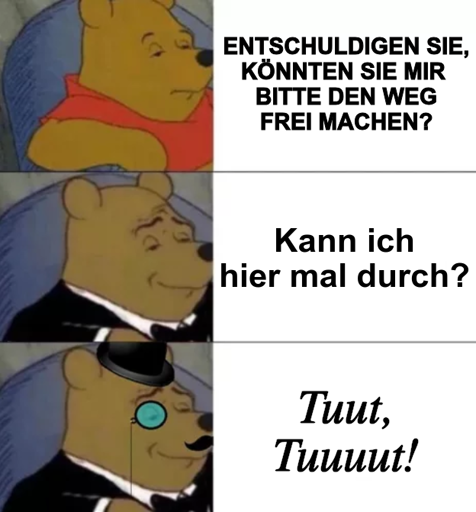 minus-squareMCTamTam@feddit.orglinkfedilinkarrow-up2·1 month agoKönnen sie mich mal eben durch lassen?