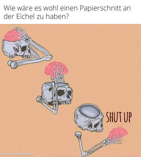 minus-squarebleistift2@sopuli.xyzlinkfedilinkDeutscharrow-up8·19 days agoDa war die Eichel wohl sehr nah am Sack. Hihihi, Kleiner-Penis-Witz