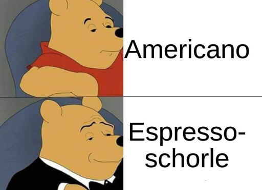 Ich hatte mal eine Maschine die macht rote Augen Kaffee: Ein Espresso, noch ein Espresso, bisschen heißes Wasser und nochmal einen Espresso.