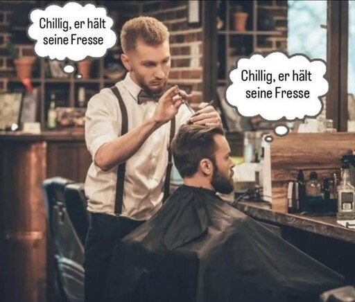 Dieses. Ich bin mir immer noch nicht sicher, wo mein Friseur her kommt, ich tippe aktuell auf “irgendwo im Balkan”. Aber immerhin spricht er nicht gut deutsch und redet deshalb nicht viel von sich aus.