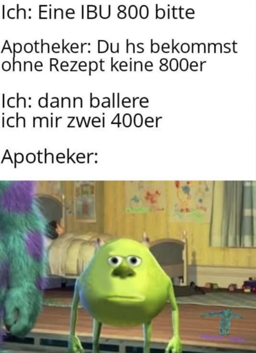 Es ist Ibuprofen. Du nimmst eine Hand voll, wirfst sie auf die Patientin, und was immer im Mund hängen bleibt ist die richtige Dosis!