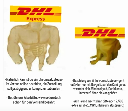 Ich hab auch schon Kamerazubehör aus Japan bestellt, mir ausgerechnet, dass es etwa 80€ Einfuhrumsatzsteuer werden und noch mit 20€ Gebühren gerechnet. Am Ende wollte der DHL-Mensch dann insgesamt 140€ und so viel hatte ich nicht im Haus. Also hat er mein Paket wieder mitgenommen und ich musste den ganzen Tanz zwei Tage später nochmal aufführen. In die Filiale umleiten und da mit Karte bezahlen war natürlich auch nicht möglich.