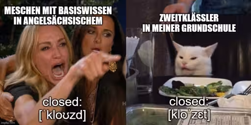 “Closed” ist Angelsächsisch und heißt “Klosett”, muss man wissen. Daher die Aussprache. Die Kleinen machen das schon richtig.