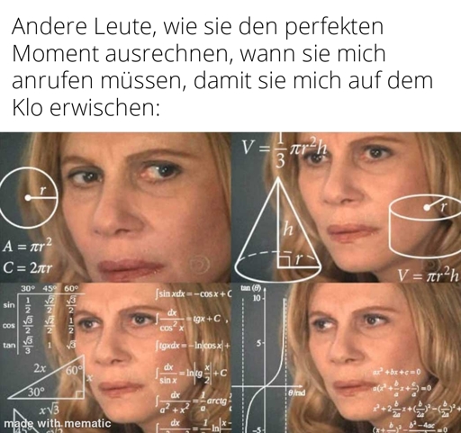 Wieso müssen Leute eigentlich immer genau dann anrufen, wenn ich auf dem Klo bin. Lasst mich doch bitte einfach in Ruhe scheißen.