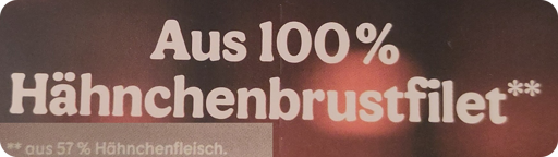 Ich meine mich zu erinnern, dass der Lege mal sagte, dass diese Aussage meint, das auch wenn das Produkt aus Stücken zusammengepappt wurde, es eben nur aus Muskelfleisch besteht ohne sonstiges “Brät”. Sollte man natürlich trotzdem nicht essen, von nem ganzen Tier hat man doch eh viel mehr, also wenn man schon Fleisch isst.