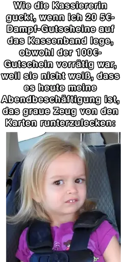 Niemand bringt hier Klitorispapierschnitte ins Spiel. Kann nicht mal jemand in dieses Draußen gehen, eine Frau fangen und hierhin bringen?
